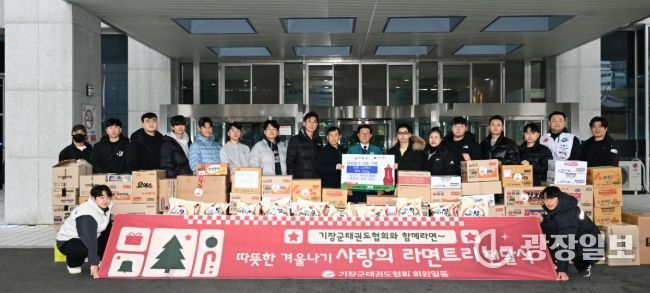 이날 기탁된 성품 중 라면은 기장군 태권도협회와 협회 소속 체육관(강한·독수리·문창·칠보·야무진·라온·행복한·한얼·신정·월내·앰케이비·영웅·어울림·한솔·해빛·아이원·윤빛·온리원) 18개소 회원들이 십시일반 뜻을 모아 마련한 것이다. 이에 기장군 태권도협회가 백미 200kg를 추가로 기탁하면서, 연말연시 이웃사랑 실천에 따뜻한 마음을 더했다.