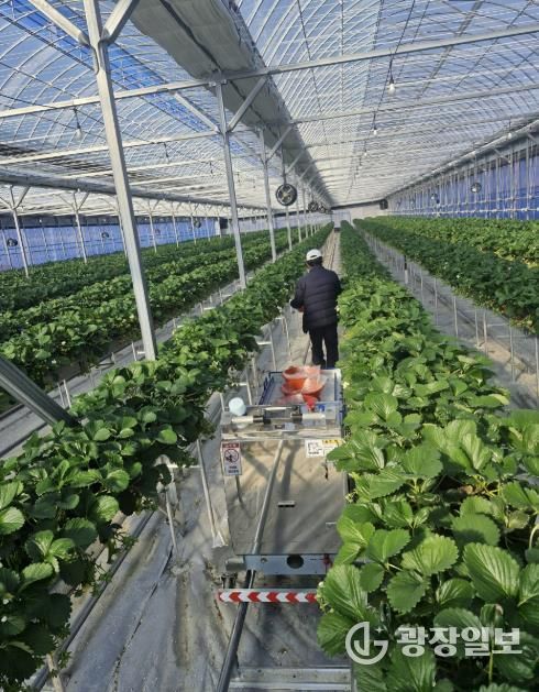광장일보 주재영 기자 | 예천군은 농촌 고령화와 인력난 해소를 위해 ‘스마트팜 작업자 추종 운반 로봇’ 시범사업을 풍양면의 ‘원네스 딸기’ 농가에 실시했다.