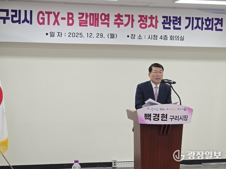 구리시= 주재영 기자 | 백경현 구리시장은 29일 기자회견을 열고 “GTX-B 갈매역 정차는 단순한 추가 정차 문제가 아니라 갈매권역 6만여 시민의 교통생존권이 걸린 사안”이라며 “갈매지구와 2027년 준공 예정인 갈매역세권지구 시민들이 소음·진동 등 환경 피해만 감내해야 하는 불합리한 상황은 반드시 바로잡아야 한다”고 밝혔다.