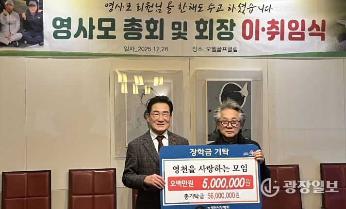 광장일보 주재영 기자 | 영천시는 지난 28일 영사모(영천을 사랑하는 모임)가 500만원, 29일에는 신녕농업협동조합 500만원, 신녕면 이장협의회 102만원의 장학금을 영천시장학회에 기탁했다고 밝혔다.