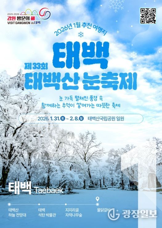 이번 ‘1월 추천 여행지’ 선정에 따라 태백시는 태백산 눈축제를 중심으로 겨울철 관광 콘텐츠를 집중 홍보해 겨울 관광객 유입을 본격적으로 확대할 계획이다.