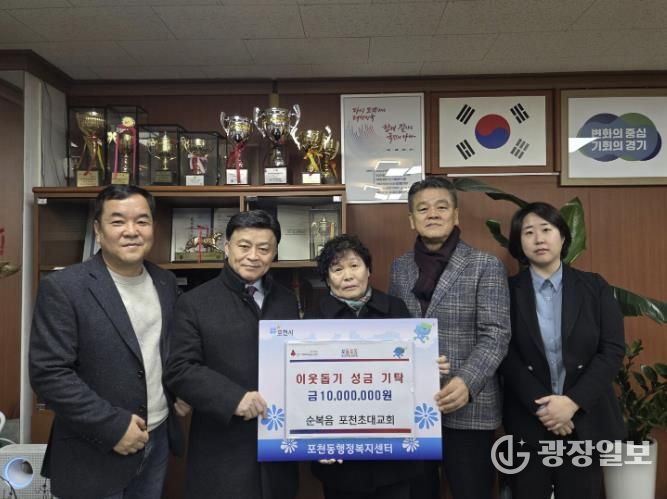 양성환 포천동장은 ”지역사회를 위해 따뜻한 나눔을 실천해주신 순복음 포천초대교회에 깊이 감사드린다“며 ”기탁된 성금은 도움이 꼭 필요한 이웃들에게 소중히 전달될 수 있도록 하겠다“고 전했다.