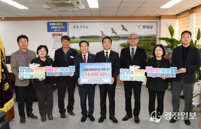 광장일보 주재영 기자 | 산림조합중앙회 부산울산경남지역본부(본부장 강주호) 지난 29일 (재)창녕군인재육성장학재단에 지역 인재육성을 위한 장학금 1,000만 원을 기탁했다.