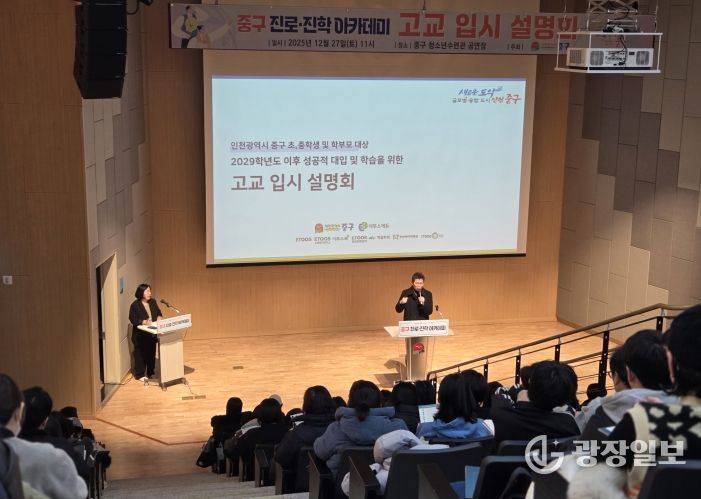 광장일보 주재영 기자 | 인천시 중구는 지난 20일, 27일 양일간 중구청소년수련관에서 관내 학생과 학부모를 대상으로 ‘중구 진로·진학 아카데미’를 성황리에 개최했다고 30일 밝혔다.