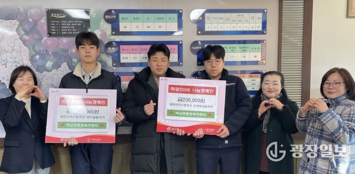 광장일보 주재영 기자 | 화남면은 30일 영천전자고등학교에서 비즈쿨·또래상담 동아리 운영을 통해 마련한 수익금 각 100만원과 20만원, 총 120만원을 ‘희망2026 나눔캠페인’ 성금으로 기탁했다고 밝혔다.