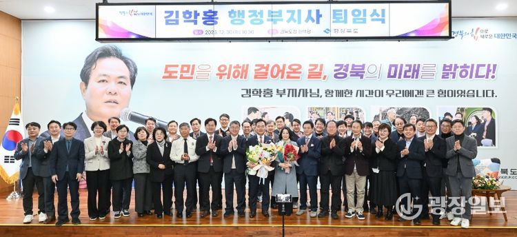 광장일보 주재영 기자 | 김학홍 경상북도 행정부지사가 30일 도청에서 퇴임식을 갖고, 3년 2개월간의 행정부지사 임기를 끝으로 33년간의 공직 생활을 마무리했다.
