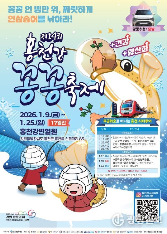 특히 겨울철 대표 축제인 '홍천강 꽁꽁축제'와 연계해, 계절 관광자원과 지역 축제를 결합한 체류형 관광 프로그램으로 구성함으로써 축제 현장에 활력을 더하고 지역 인지도 향상에도 기여할 것으로 기대된다.