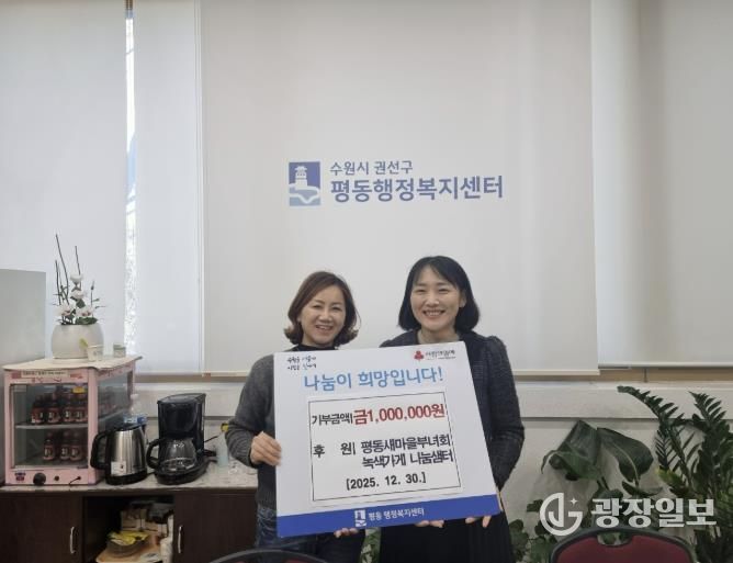 광장일보 나학천 기자 | 지난 30일 수원시 평동 부녀회는 관내 어려운 이웃을 돕기 위해 녹색가게 운영을 통해 얻은 수익금 100만 원을 기부했다.