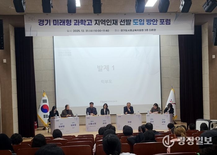 광장일보 이현나 기자 | 경기도시흥교육지원청은 2025년 12월 31일 오전 10시에 ‘경기 미래형 과학고 지역인재선발 도입 방안 포럼’의 마지막 의견 수렴회를 개최했다. 이번 포럼은 '경기 미래형 과학고 발전 방안 정책연구'를 기반으로 지역인재선발 도입 방안을 논의하는 자리로, 교직원과 지자체 관계자, 학부모 등이 참석해 열띤 토론을 진행했다.