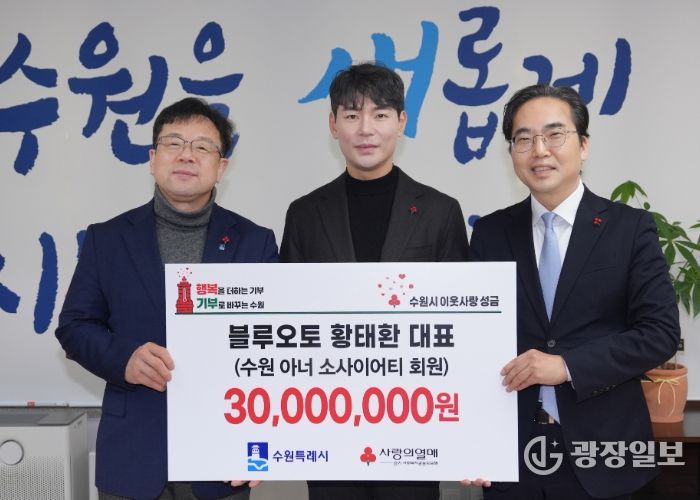 광장일보 나학천 기자 | 황태환 블루오토 대표가 12월 31일 “취약계층 아동 지원에 사용해달라”며 3000만 원을 수원시에 기부했다.