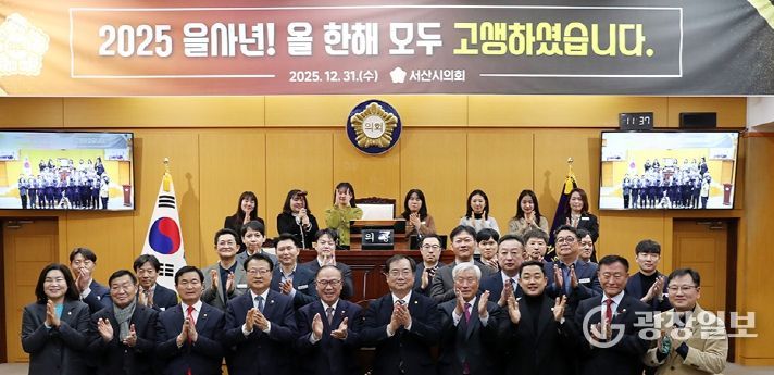 광장일보 주재영 기자 | 서산시의회는 31일 서산시의회 본회의장에서 ‘2025년 서산시의회 종무식’을 개최하고 올해 공식 일정을 마무리했다.