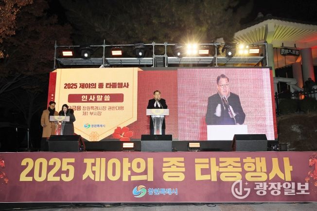 광장일보 주재영 기자 | 창원특례시는 2025년 12월 31일 밤, 창원대종각에서 개최한 ‘제야의 종 타종행사’를 시민들의 뜨거운 호응 속에 성황리에 마무리했다고 밝혔다.