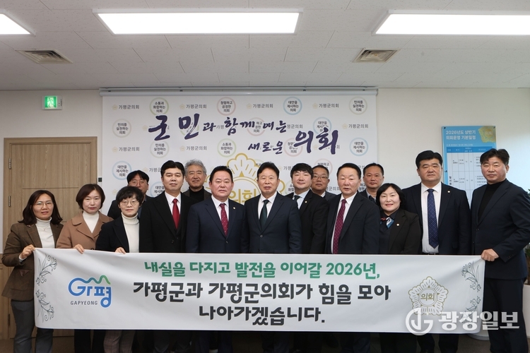 가평군= 주재영 기자 | 가평군과 군의회는 지난 31일 군의회에서 소통과 협력 강화를 위한 간담회를 열고 새해 군정 운영 방향과 주요 현안에 대해 의견을 나눴다. 이날 자리에는 서태원 군수와 김미성 부군수를 비롯한 집행부 관계자와 김경수 의장, 김종성 부의장 등 군의원들이 참석했다.