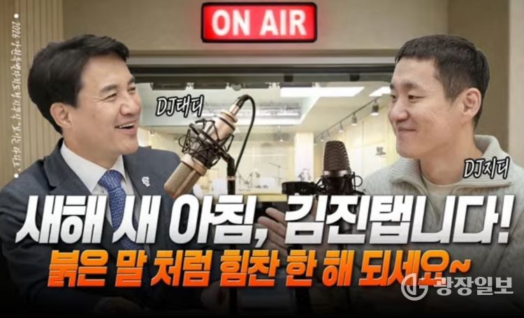 김 지사는 이날 도청 본관 소회의실에서 진행된 라디오에서 “취임 이후 매년 시무식을 이렇게 라디오로 진행하고 있다”며, “1년 만에 디제이 태디로 돌아왔다”고 인사했다.