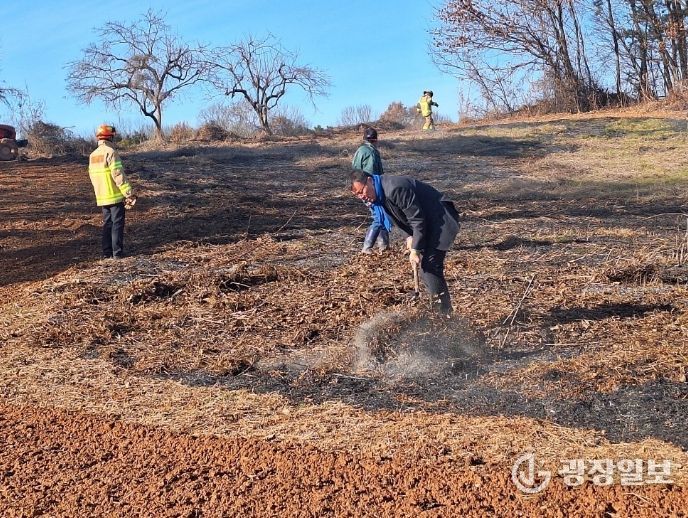 현장에서는 불이 번질 수 있는 마른 낙엽과 잔가지를 제거하고, 이미 그을린 지역을 중심으로 잔불 정리 작업을 벌이며 추가 확산을 막는 데 힘을 보탰다.
