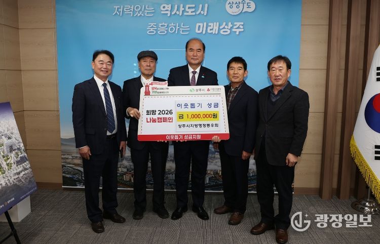 광장일보 주재영 기자 | 상주시지방행정동우회(회장 차영덕)은 2일 상주시청 시민의 방을 방문하여 희망2026 나눔캠페인 성금 100만원을 기탁했다.