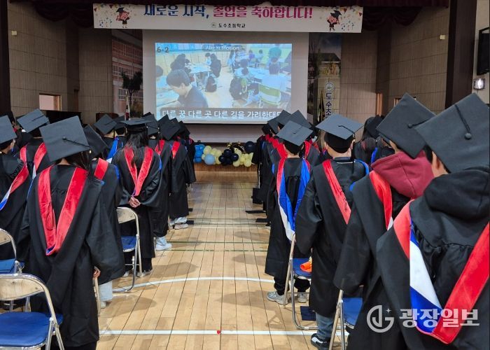 이번 졸업식은 졸업생 전원이 학사복과 학사모를 착용하고 참여해 6년간의 학업을 마친 성취와 도수초 공동체의 일원임을 상징적으로 보여주며 눈길을 끌었다. 졸업생들은 학사모 던지기 이벤트를 통해 새로운 출발을 향한 다짐과 기쁨을 함께 나눴으며, 졸업생 전원에게는 1인 1표창장이 수여됐다.
