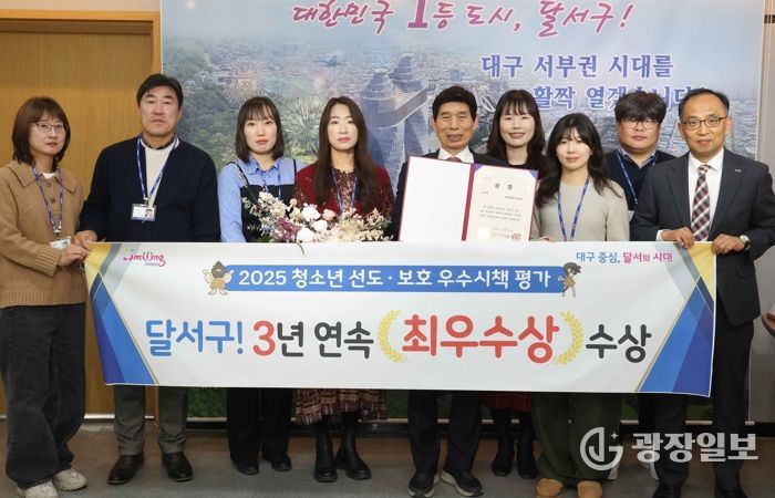 광장일보 주재영 기자 | 대구 달서구는 '2025년도 대구시 청소년 선도·보호 우수시책 구·군 평가'에서 3년 연속 최우수 기관으로 선정됐다.