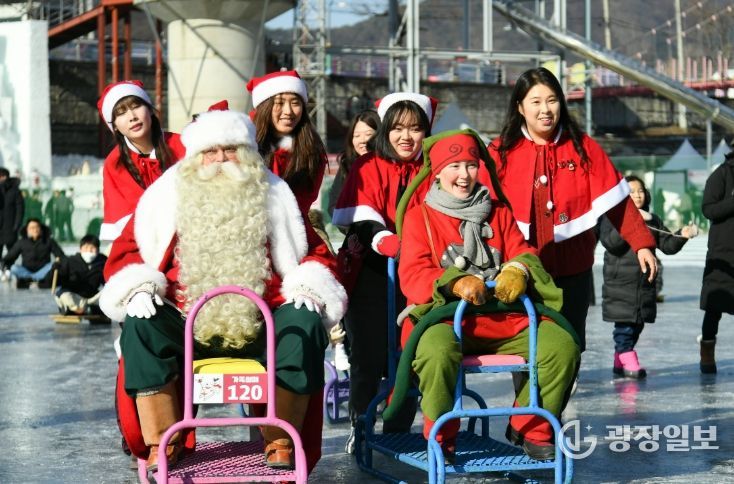 특별히 산타와 엘프는 1월22일 오후 2시, 하남면 거례리 산천어 파크골프장에서 화천지역 어린이들과 이색 파크골프 대결도 벌일 예정이다.