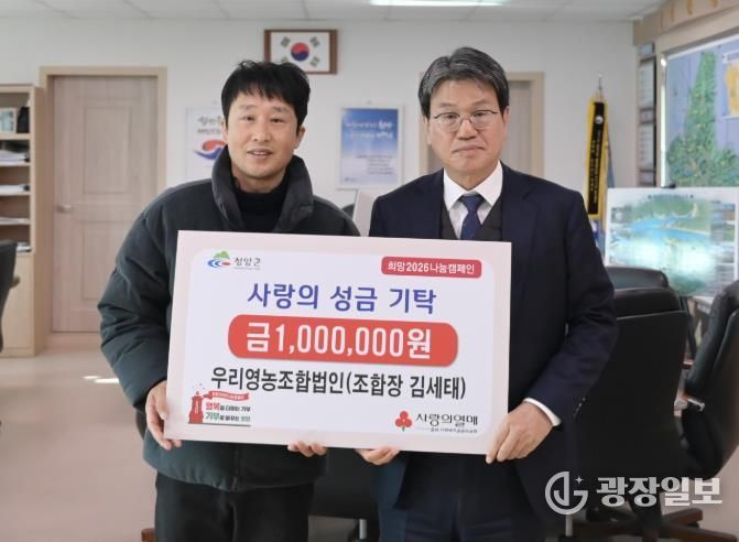광장일보 주재영 기자 | 청양군은 지난 2일 우리영농조합법인이 ‘희망2026 나눔캠페인’을 통해 성금 100만원을 기탁했다고 밝혔다.
