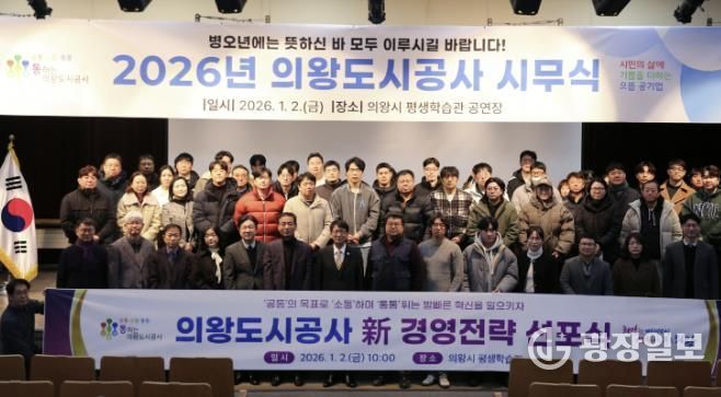 광장일보 주재영 기자 | 의왕도시공사는 1월 2일 평생학습관 공연장에서 열린 시무식에서 ‘신경영전략 선포식’을 개최하고, 급변하는 경영환경에 대응하기 위한 새로운 전략 방향과 실행 과제를 공식 발표했다.