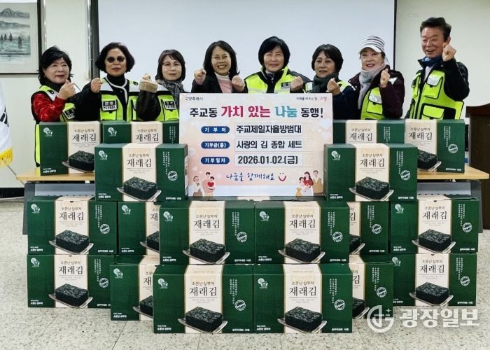광장일보 주재영 기자 | 고양특례시 덕양구 주교동은 지난 2일, 주교제일자율방범대가 새해를 맞아 지역 내 취약계층을 위한 ‘사랑의 김 종합 세트’를 전달했다고 밝혔다.