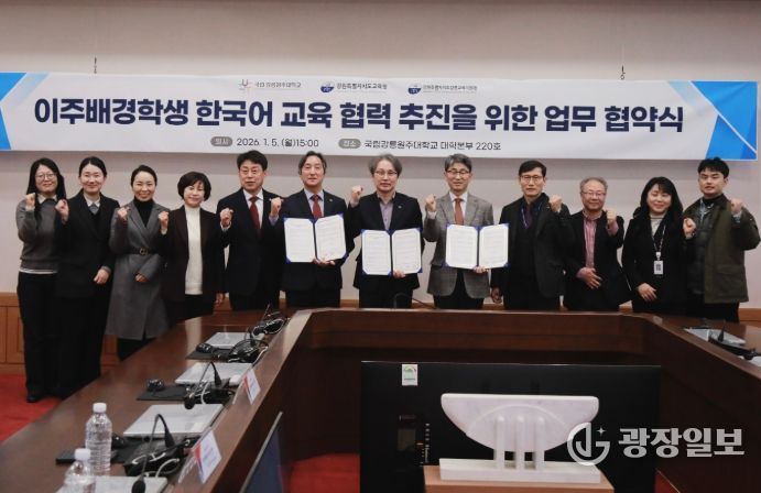 광장일보 이현나 기자 | 강원특별자치도교육청은 1월 5일 국립강릉원주대학교에서 강릉교육지원청, 국립강릉원주대학교와 함께 이주배경학생의 한국어교육 내실화와 안정적인 공교육 진입 지원을 위한 업무협약을 체결했다.