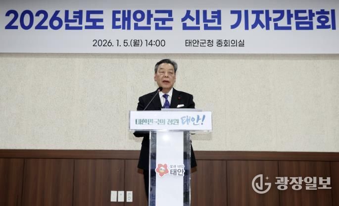 광장일보 주재영 기자 | 가세로 태안군수가 5일 군청 중회의실에서 병오년(丙午年) 새해 신년 기자회견을 갖고, 민선 8기 군정의 마무리와 미래 도약을 함께 준비하는 2026년 군정 운영 방향을 발표했다.
