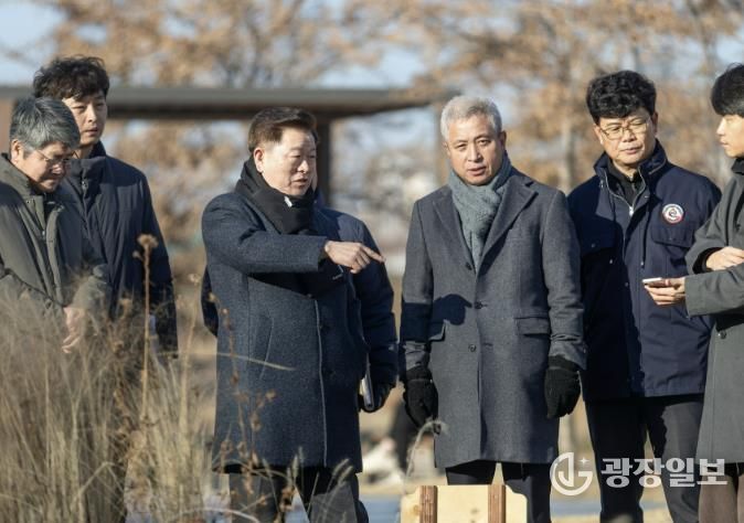박승원 광명시장은 지난 5일 지난해 12월 조성을 완료한 안양천 지방정원 시범사업구간을 찾아 정원 조성 결과와 이용 현황을 살펴보고, 향후 본 공사 구간의 조성·운영 방향을 논의했다.