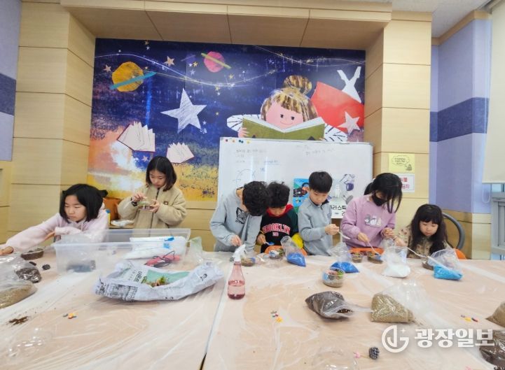 ▲'겨울독서교실' 나만의 ‘움직이는 그림책’ 팝업북 공작소는 초등학교 1~3학년 대상으로 책에서 느낀 감동과 창의적인 아이디어를 종이 공학의 기본 원리인 ‘팝업 기법’에 적용하여 단순히 책을 읽는 것을 넘어, 책 속의 이야기를 ‘살아 움직이는 팝업북’으로 직접 만들어 볼 수 있는 프로그램이다.
