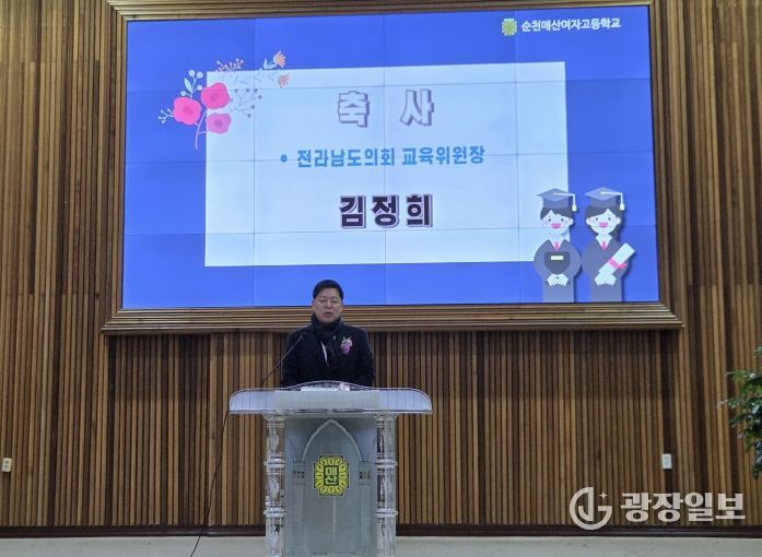광장일보 주재영 기자 | 김정희 전남도의회 교육위원장은 1월 6일 순천매산여자고등학교에서 열린 제75회 졸업식에 참석해 졸업생들의 새로운 출발을 축하하고, 전남교육의 미래를 향한 도의회 교육위원회의 지원 의지를 밝혔다.