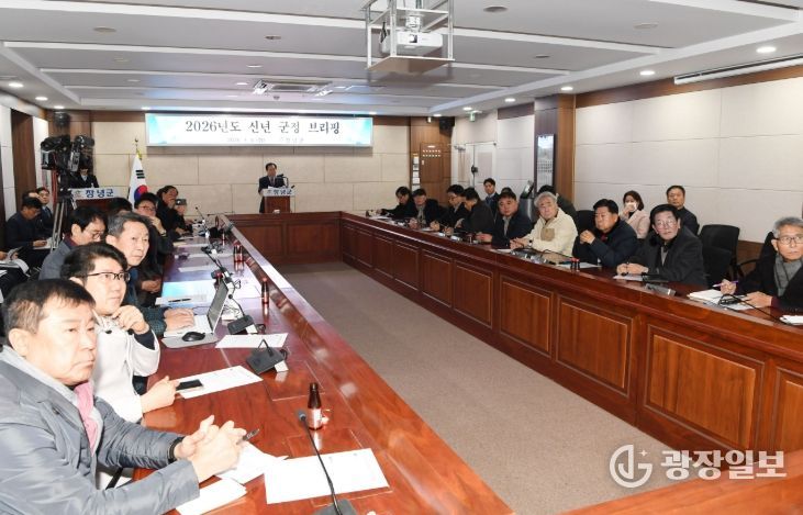 광장일보 주재영 기자 | 성낙인 창녕군수는 6일 군청 군정회의실에서 2026년 신년 언론 브리핑을 열고, 2025년 군정 운영 성과를 바탕으로 새해 군정 비전과 분야별 중점 추진 계획을 제시했다.