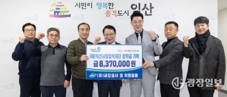 익산시 향토기업인 금강공사(대표이사 최은규)는 6일 시청을 방문해 (재)익산사랑장학재단에 장학금 837만 원을 기탁했다.