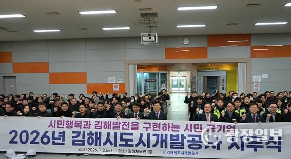 광장일보 주재영 기자 | 김해시도시개발공사는 지난 2일 2026년 새해 시무식에서 전 직원이 청렴실천과 안전보건 결의를 다지며 힘차게 새해 첫 업무를 시작했다고 밝혔다.