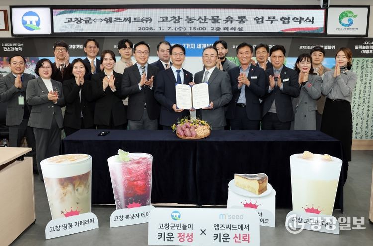 광장일보 주재영 기자 | 고창군이 7일 군청에서 엠즈씨드(주)(대표 권익범)와 고창 농산물 유통 활성화를 위한 업무협약(MOU)을 체결하고 지역 상생을 위한 협력 모델 구축에 나섰다.