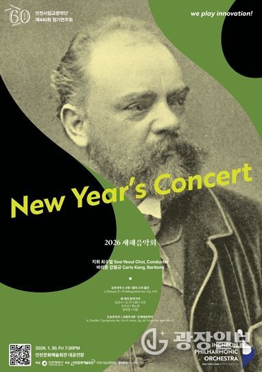 광장일보 주재영 기자 | 창단 60주년을 맞아 시민의 곁으로 더욱 친근하게 다가가고 있는 인천시립교향악단(예술감독 최수열)이 '2026 새해음악회'로 병오년(丙午年)의 힘찬 포문을 연다.
