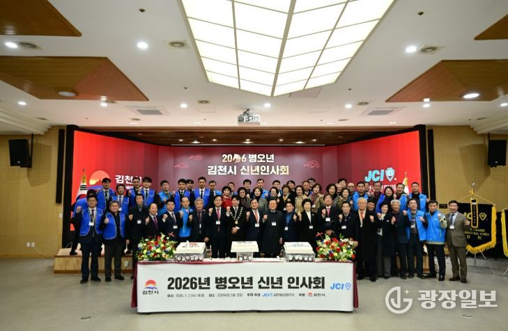 광장일보 주재영 기자 | 2026년 붉은 말의 해(병오년)를 맞아 힘찬 시작과 새로운 도약을 다짐하는 ‘김천시 신년 인사회’가 7일 오후 2시 시청 3층 강당에서 성황리에 개최됐다.