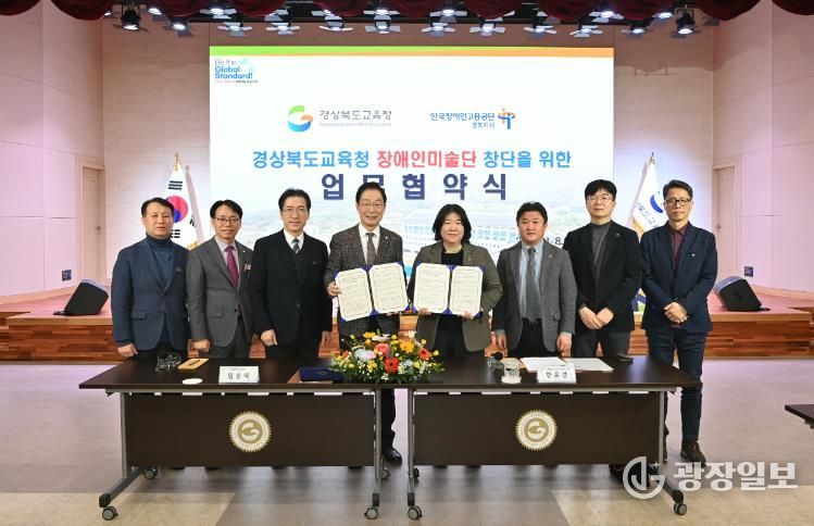 광장일보 주재영 기자 | 경북교육청은 8일 본청 웅비관에서 한국장애인고용공단 경북지사와 ‘(가칭)경상북도교육청 장애인미술단’ 창단을 위한 업무협약을 체결했다고 밝혔다.
