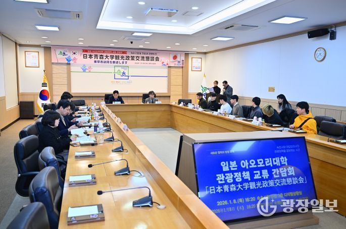 광장일보 이현나 기자 | 속초시가 2026년 1월 8일 일본 아오모리대학 관계자들과 관광정책 간담회를 열고, 속초시와 일본 아오모리시 간 관광 교류 협력방안을 논의했다. 이날 아오모리대학 교수와 학생 등 8명이 속초시를 방문했다.