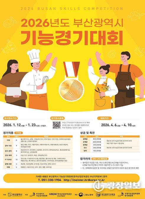 광장일보 주재영 기자 | 부산시 기능경기위원회는 '2026년도 부산시 기능경기대회'에 참가할 숙련기술인을 모집한다고 밝혔다.
