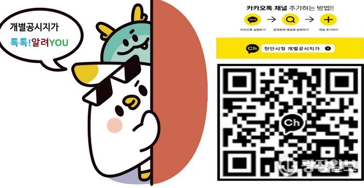 광장일보 주재영 기자 | 천안시가 충남 최초로 개별공시지가 정보를 신속하게 제공하기 위해 카카오톡 채널 ‘톡톡! 알려 YOU’를 개설했다고 9일 밝혔다.