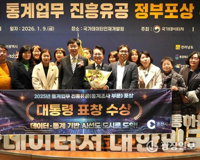 광장일보 이현나 기자 | 춘천시가 9일 2025년 통계업무 유공을 인정받아 강원특별자치도 18개 시군 중 최초로 대통령 표창을 수상했다.
