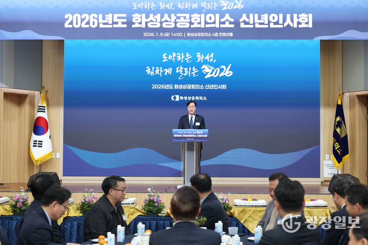 성남시= 주재영 기자 | 화성상공회의소는 지난 9일 컨벤션홀에서 ‘2026년 신년인사회’를 열고 관내 기업인들을 격려하며 지역경제 도약을 다짐했다.