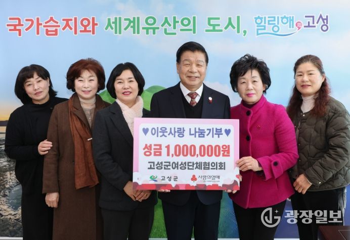 광장일보 주재영 기자 | 고성군은 고성군여성단체협의회(회장 최외숙)가 1월 8일 고성군청을 방문해 소외계층을 위한 이웃돕기 성금 100만 원을 기탁했다고 밝혔다.