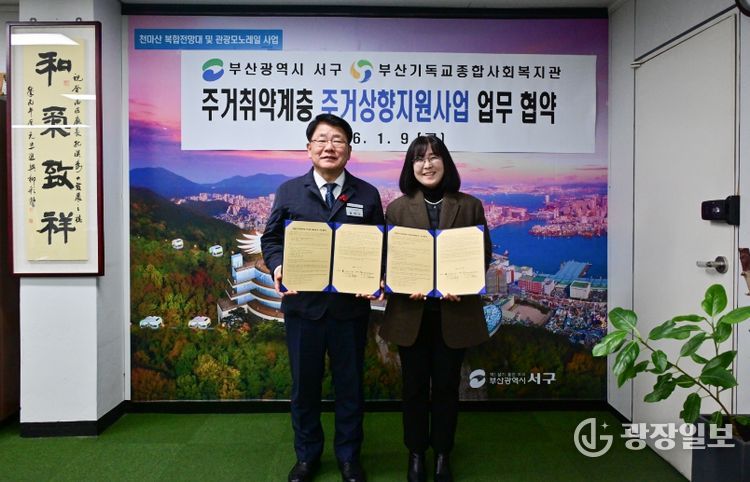 광장일보 주재영 기자 | 부산 서구와 부산기독교종합사회복지관(관장 김정자)은 지난 9일 2026년 주거 취약계층 주거상향지원사업 업무협약을 체결했다.