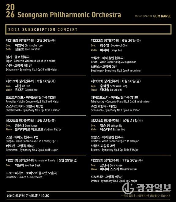 광장일보 주재영 기자 | 2026년 창단 23주년을 맞는 성남시립교향악단은 해마다 다양한 연주자와 수준높은 프로그램으로 끊임없이 매진 행렬을 이어가고 있다.