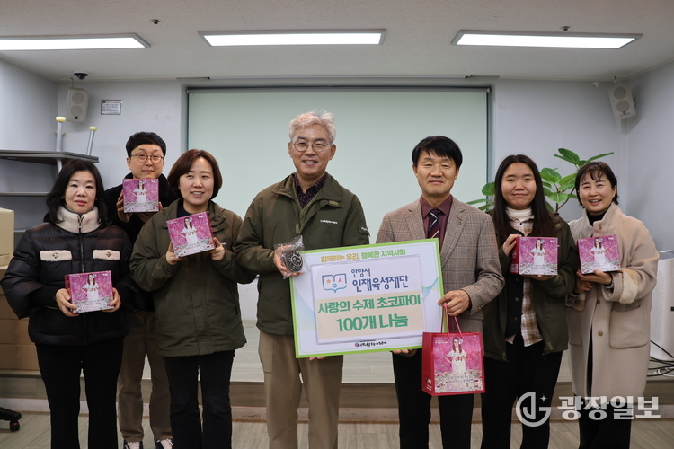안양시= 주재영 기자 | 안양시 인재육성재단(이사장 최대호)은 지난 8일 재단 베네치아 중강당에서 전 임직원이 참여하는 ‘사랑의 수제 초코파이 나눔’ 사회공헌활동을 진행했다고 12일 밝혔다.