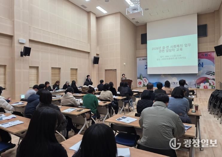 광장일보 주재영 기자 | 고창군이 지난 9일 고창군보훈회관 1층 다목적실에서 읍·면 사회복지 업무 담당자 30여 명을 대상으로 2026년 사회복지사업 추진방향 교육과 공유의 시간을 가졌다.