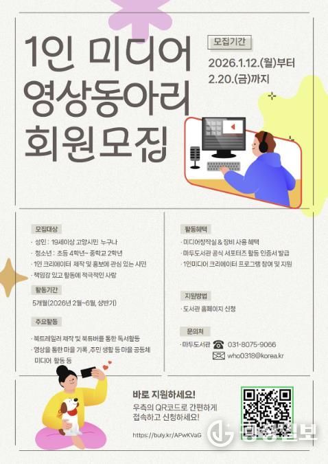 고양특례시 마두도서관이 미디어 창작실을 기반으로 한‘1인 미디어 영상동아리’를 2월부터 6월까지 운영한다. 영상동아리를 통해 지역주민을 마을의 문화와 역사를 기록하는 시민활동가로 성장시키고, 청소년은 물론 고양시민의 독서경험을 영상으로 확장하고 사회적으로 공유하는 새로운 시도에 나선다.