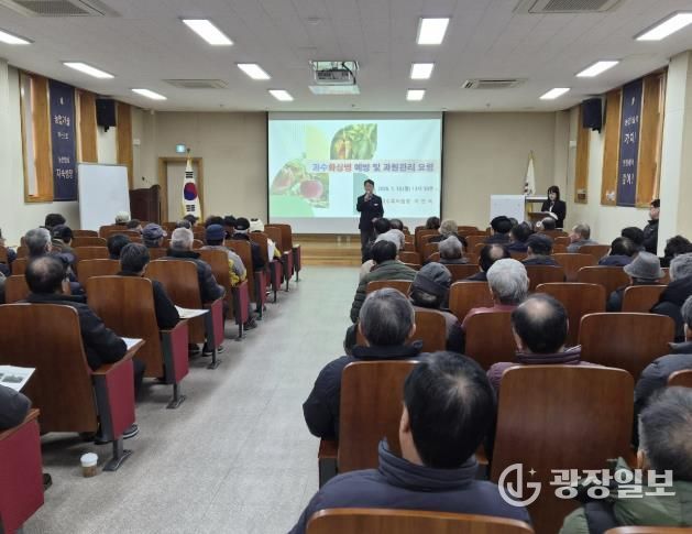 광장일보 이현나 기자 | 당진시는 지난 12일 관내 과수(사과, 배)농가 100여 명이 참석한 가운데 과수화상병 예방을 위한 과원관리 교육을 실시했다고 13일 밝혔다.